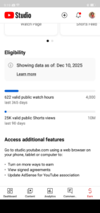 The channel is Huf monetized and has a clean history with no community guideline warnings and no copyright strikes.